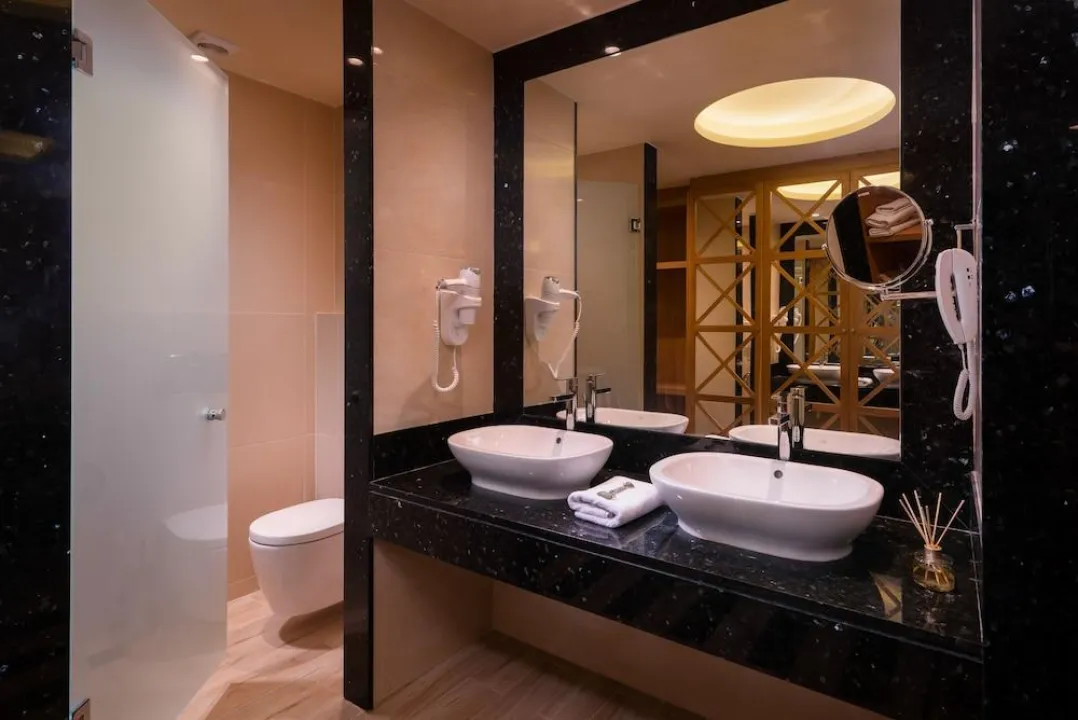 Klima uređaj i centralno grejanje garantuju da sobe održavaju udobne temperature. Gosti mogu opustiti i uživati u pogledu na more sa balkona ili privatne terase pojedinih soba. Sobe imaju bračni krevet, krevet queen-size ili sofu na razvlačenje. Dostupne su odvojene spavaće sobe. Dodatni kreveti mogu se zatražiti. Na raspolaganju su i sef i radni sto. Dodatne pogodnosti uključuju frižider i mini frižider. Set za peglanje je dostupan radi gostove praktičnosti. Takođe se pružaju telefon, TV i WiFi (bez dodatnih troškova). Kupatila su opremljena tušem i kadom, kao i fenom za kosu. Za dodatnu udobnost u kupatilima, gostima se nude kozmetički proizvodi. Hotel ima sobe za nepušače.