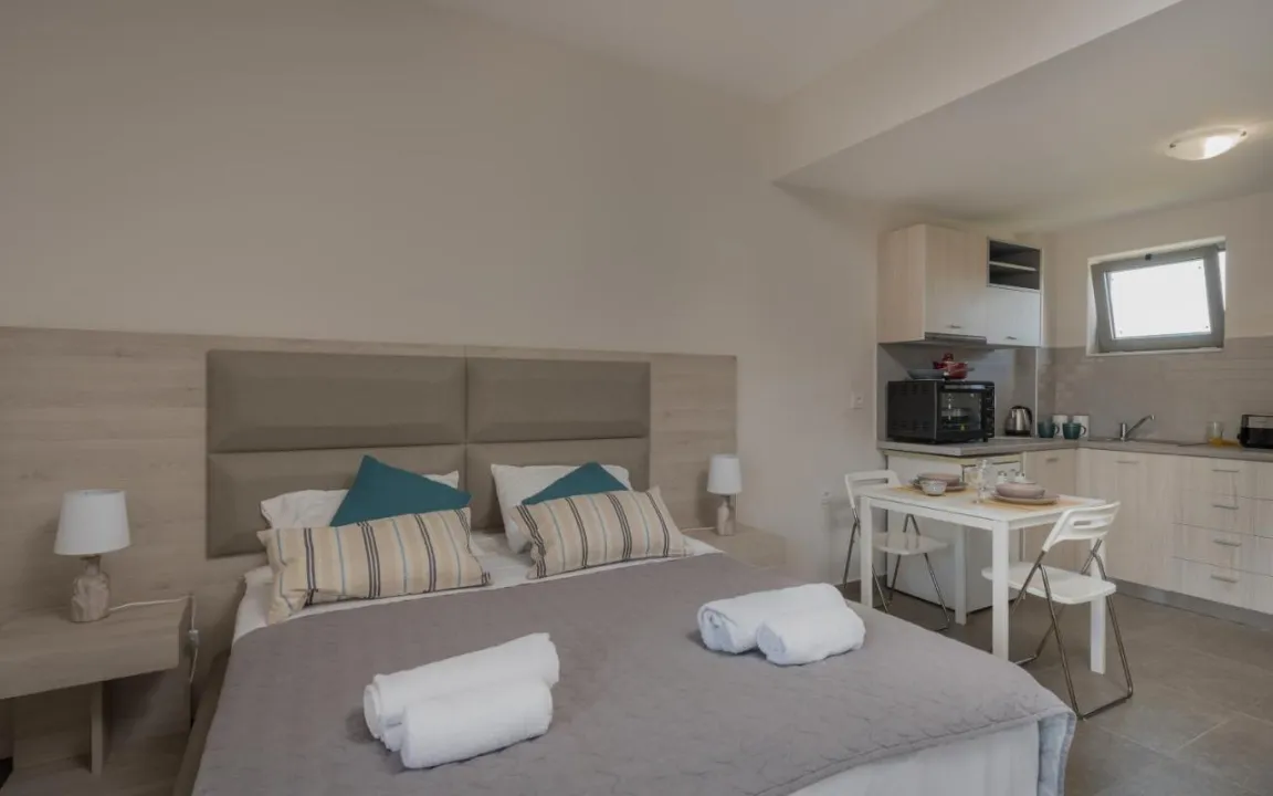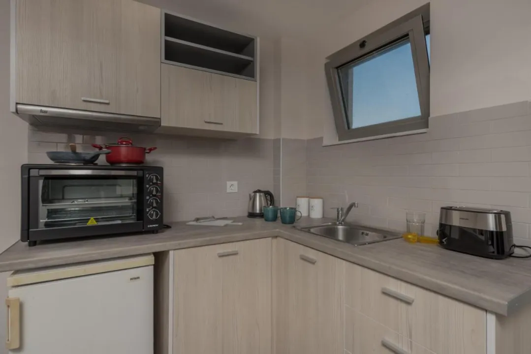 Ovaj kompleks se nalazi samo 2 minuta hoda (200 metara) od prelepe, dobro održavane šljunkovite plaže Argassi, gde gosti mogu pronaći š