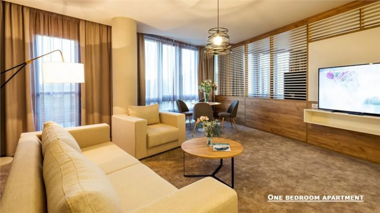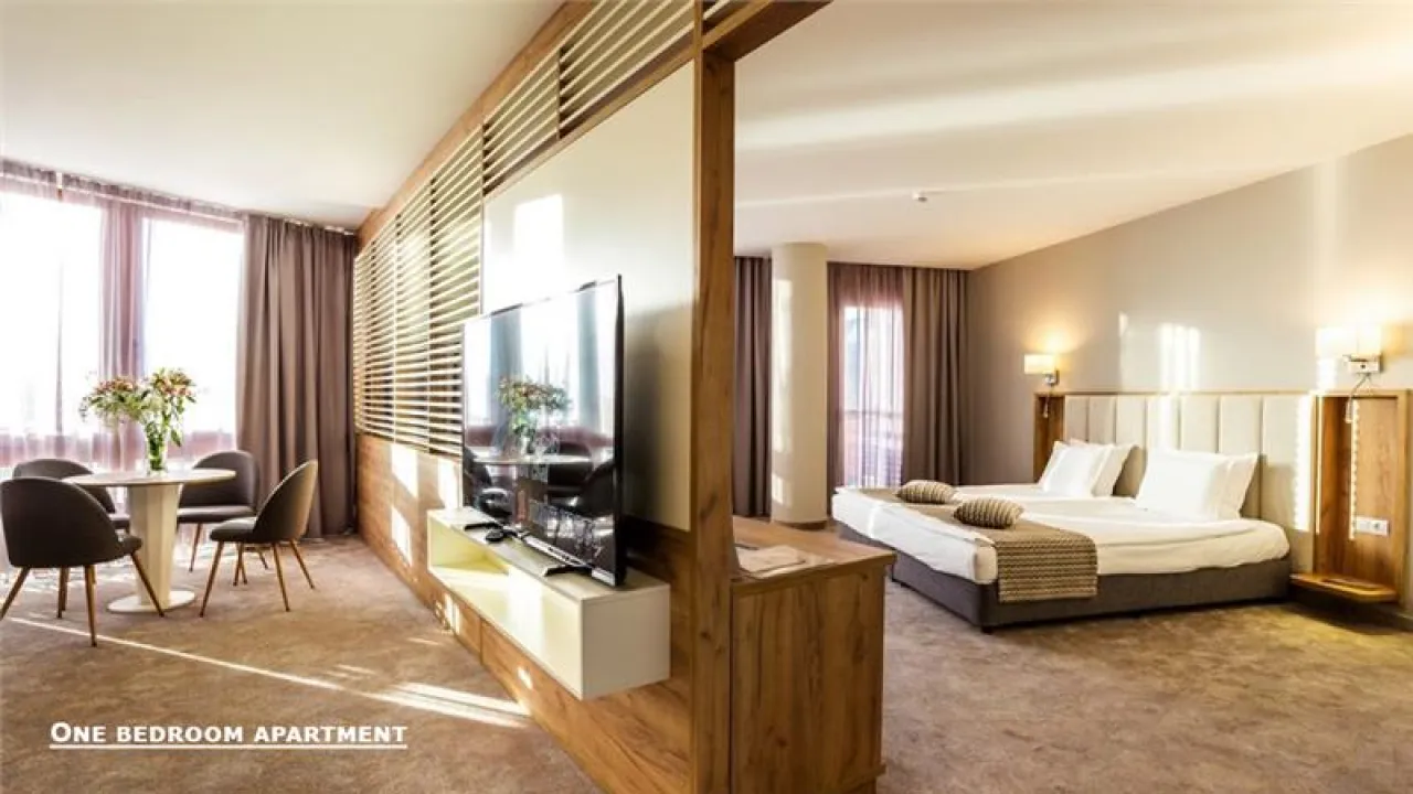 menjačnica, klima, zatvoreni bazen, sauna fitnes centar, masaža, restoran, recepcija, lobi bar, sky bar, spa centar, frizerski salon, skijašnica, parking, garaža, letnja bašta sa ležaljkama i suncobranima, konferncijska sala.