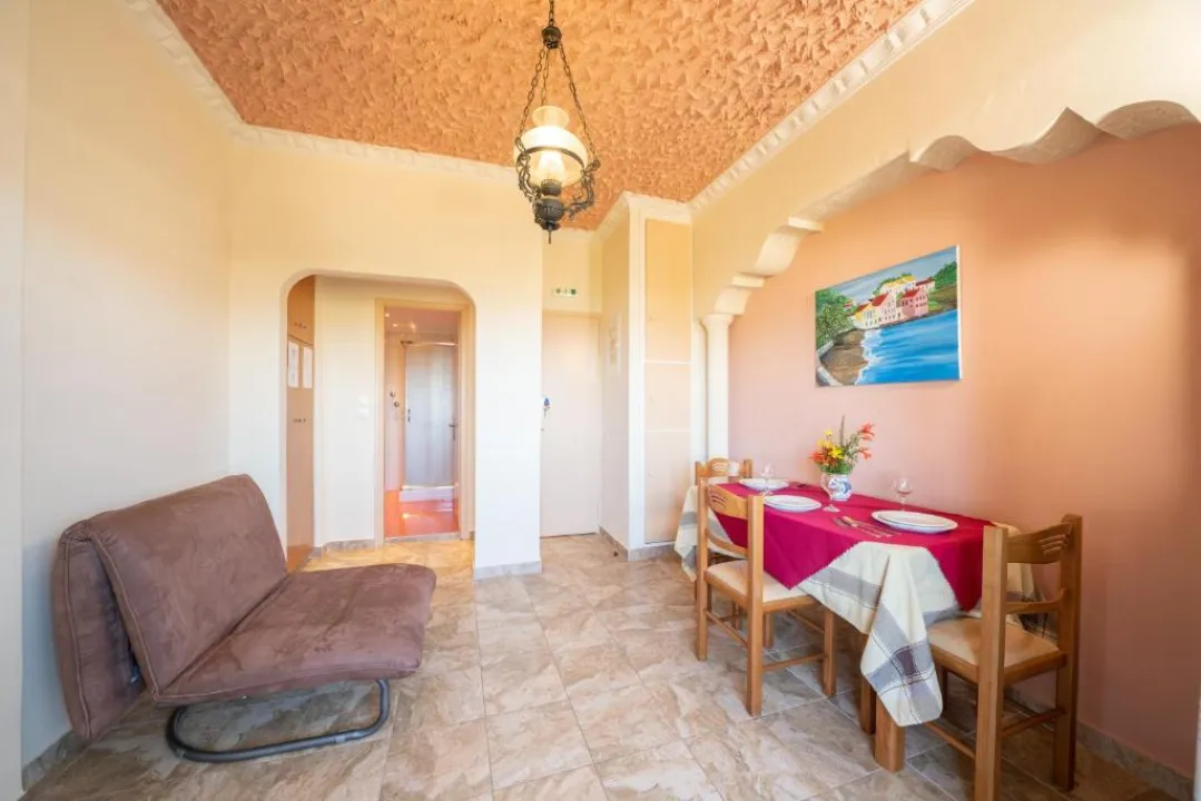 Oskars Studios Lassi odlično smešten u centru Lasija, apartmanski hotel se nalazi na obali mora, od Kalamakia plaže
