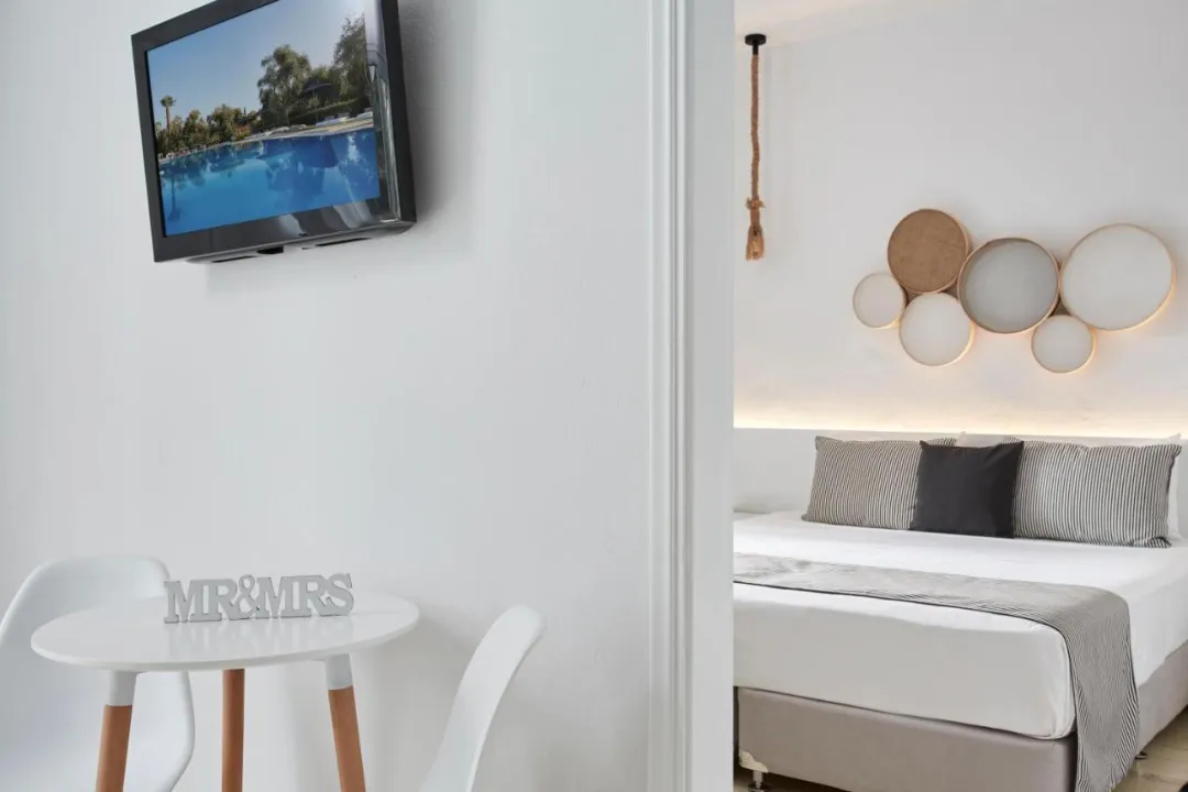 Sobe sadrže dnevni boravak i kupatilo, dok klima uređaj osigurava pravu temperaturu. U većini jedinica, gosti mogu uživati u pogledu na more sa balkona ili terase. Gosti će sigurno imati dobar san u bračnom krevetu. Dodatni kreveti mogu biti zatraženi. Na raspolaganju su sef, mini bar i radni sto. Dodatni sadržaji uključuju frižider i šporet. Set za peglanje je obezbeđen radi gostiće praktičnosti. Satelitska televizija i WiFi (bez dodatne naknade) takođe su obezbeđeni. Papuče su uključene. Fen za kosu i bade mantili su dostupni u kupatilima, koja su opremljena hidromasažnom kadom. Kozmetički proizvodi i izbor peškira pružaju dodatnu udobnost u kupatilima. Hotel ima sobe za nepušače.