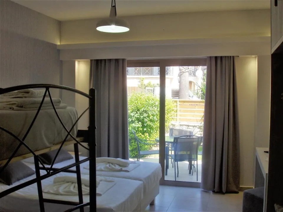 Klima uređaj i centralno grejanje osiguravaju da sobe održavaju prijatne temperature. Gosti mogu uživati u pogledu na vrt sa terase ili terase. Sobe imaju bračni krevet i kauč na razvlačenje. Dodatni kreveti se mogu zatražiti. Sef pruža sigurno čuvanje lične imovine gostiju. Postoji potpuno opremljena čajna kuhinja sa frižiderom, šporetom, mikrotalasnom pećnicom i aparatom za kafu/čaj. Za udobnost gostiju dostupan je set za peglanje. Takođe se pružaju telefon, satelitska televizija i WiFi (bez dodatne naplate). Fen za kosu se nalazi u kupatilima. Takođe je moguće rezervisati sobe prilagođene za invalidska kolica. U smještaju postoje porodične sobe i sobe za nepušače.