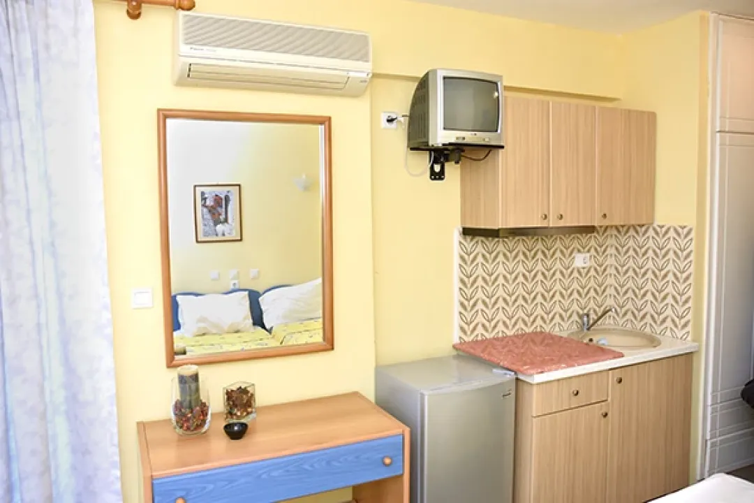 Svi studiji i apartmani sadrže kompletno opremljenu kuhinju (električni šporet bez rerne, frižider, posuđe), kupatilo, prostranu terasu, TV, Wi-Fi internet i klima uređaj čije se korišćenje naplaćuje 5€ po danu. Promena posteljine vrši se petog dana boravka.