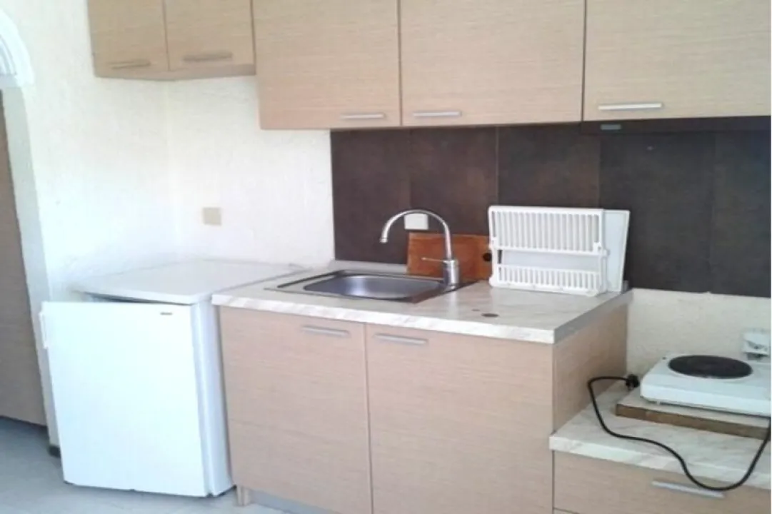 kupatilo, opremljena mini-kuhinja, frižider, TV, klima-uredjaj, terasa sa garniturom za sedenje