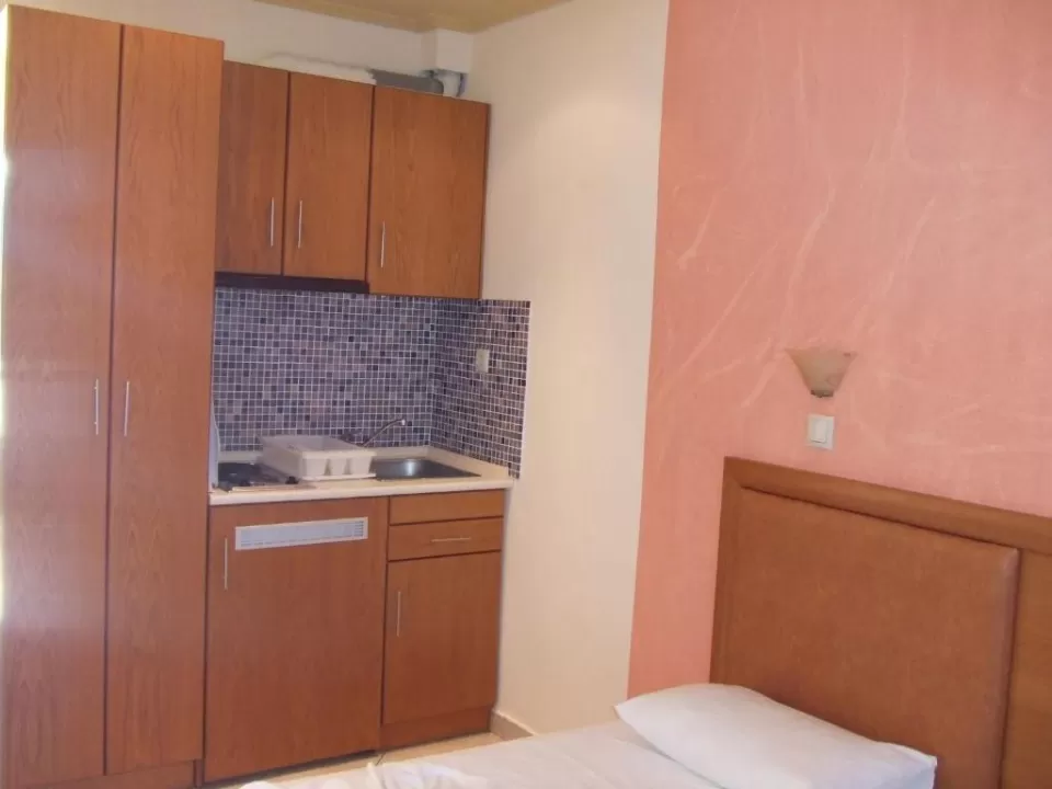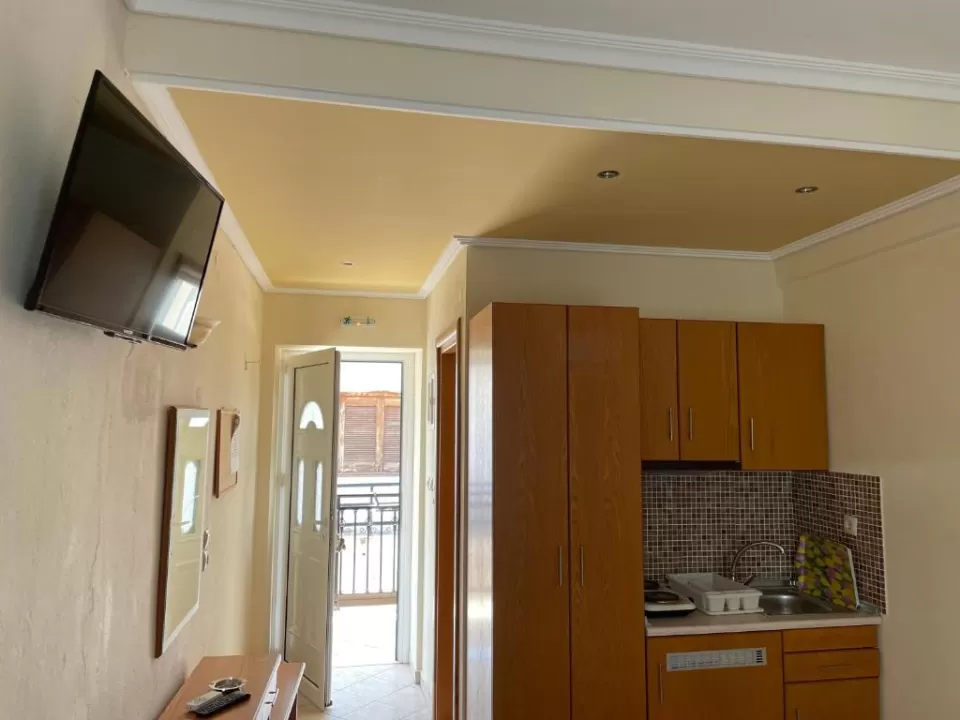 kupatilo, opremljena mini kuhinja, frižider, klima-uredjaj (uz doplatu), TV, terasa sa garniturom za sedenje